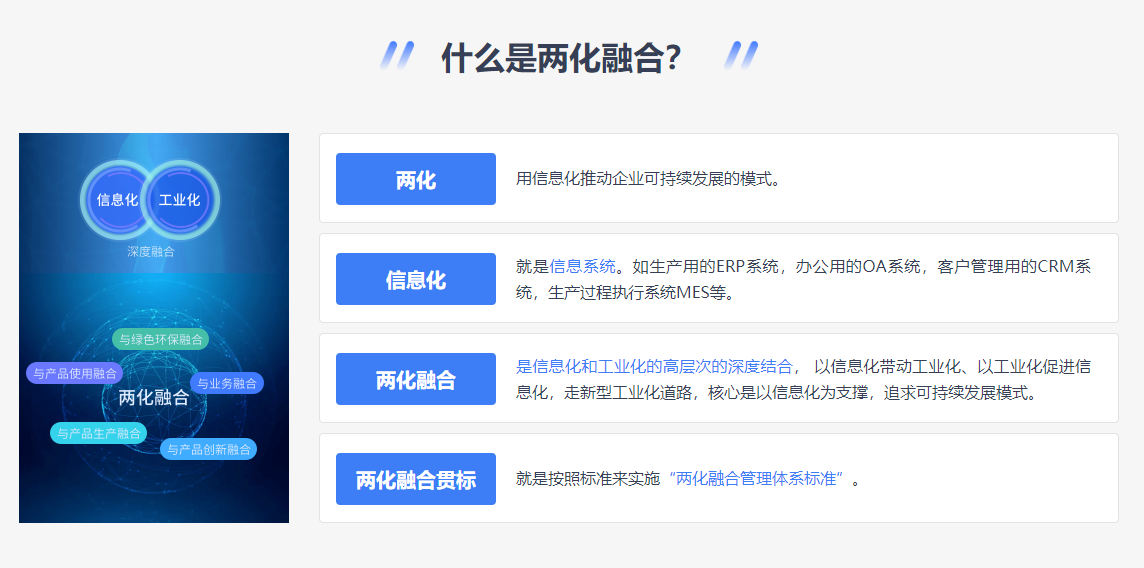 兩化融合是指工業(yè)化和信息化深度融合,集中精力發(fā)展研發(fā)、設(shè)計、銷售、管理等高附加值產(chǎn)業(yè)鏈環(huán)節(jié),實現(xiàn)產(chǎn)業(yè)高端環(huán)節(jié)的集聚和產(chǎn)業(yè)的快速增長。