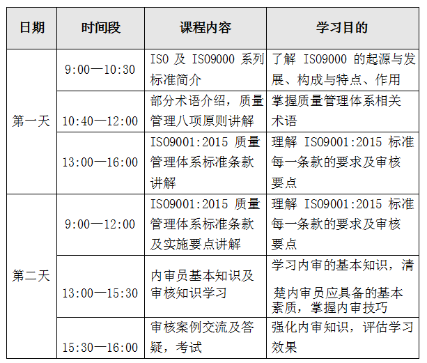 培訓費用:500 元/人(包括資料費、內(nèi)審員證書費)
