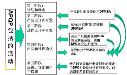 APQP是用來確定和制定確保某產(chǎn)品使顧客滿意所需步驟的結(jié)構(gòu)化方法,這樣更能達(dá)到提高工作效率以低成本提供優(yōu)質(zhì)產(chǎn)品,使策劃過程具有可重復(fù)性,防止不合格重復(fù)出現(xiàn),為改進(jìn)提供便利等目的,有利于質(zhì)量管理取得有效的結(jié)果。